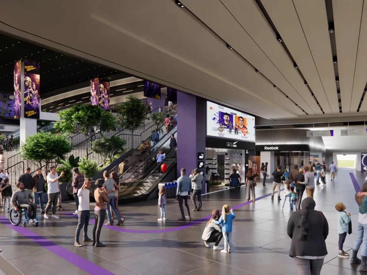 The design team is also positioning the project around the commercial demands of a more modern venue. In addition to increasing hospitality inventory, the redevelopment is intended to give Eden Gardens more non-matchday flexibility through club spaces, social areas, and experience-led zones that can operate beyond the cricket calendar. That is a meaningful shift for a stadium historically defined by capacity and atmosphere, but now being reworked to support a broader premium and event business.
